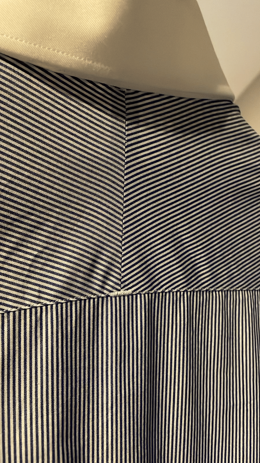 في الثوب، منطقة الكتف هي العمود الأساسي الذي إذا صلح، صلحت الخياطة بأكملها في الثوب. لذلك أخذنا بعض التقنيات المرتبطة بالقميص وتم توظيفها في ثوب الدار