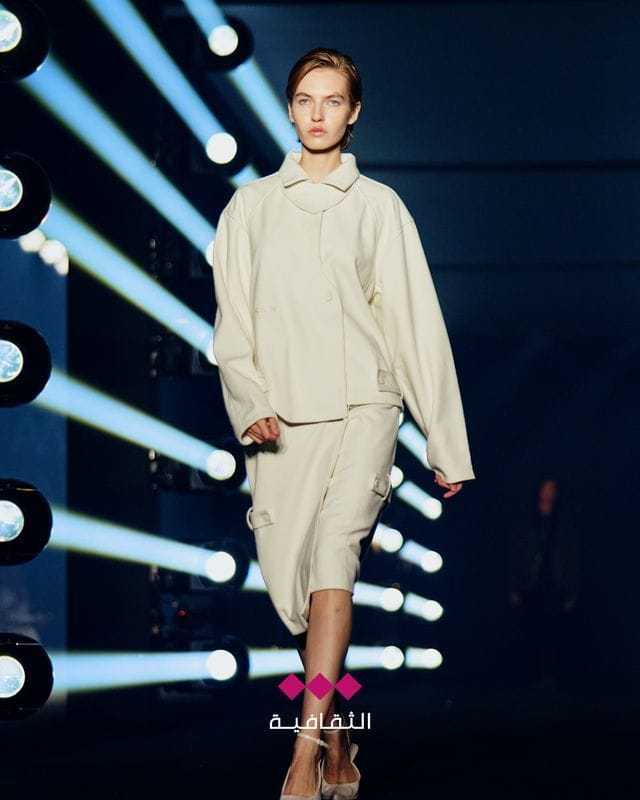 اللي ميّز المجموعة عن غيرها هو طابعها المستقبلي اللي بان في البناء والتصميم، باستخدام خامات عملية وخياطة دقيقة تعكس فكر واضح وتنفيذ متقن. الألوان كانت محايدة وهادية، تخدم الفكرة الأساسية عن التوازن بين الواقع والمستقبل. اللافت أكثر هو اللمسة اليابانية والشرق آسيوية اللي ظهرت في العرض، لكنها اندمجت بسلاسة مع أسلوب العلامة المعروف بالانسيابية والخطوط المستقيمة، وكأنها تلمّح لطموح العلامة بالوصول العالمي. حتى اسم المجموعة «المستقبل هنا» يعكس رؤية تربط بين العوالم في حاضر متصل ومفتوح. التفاصيل الهندسية، خصوصاً المثلثات اللي تكررت كعنصر زخرفي أو في القصّات، كانت إضافة لافتة وأنيقة، خصوصاً لمحبي الطابع الهندسي في الأزياء